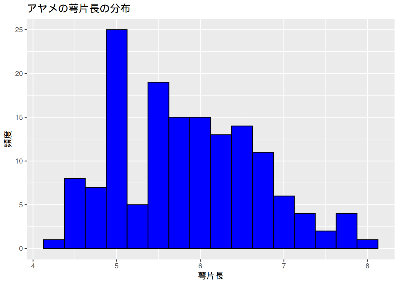title = "アヤメの萼片長の分布"
