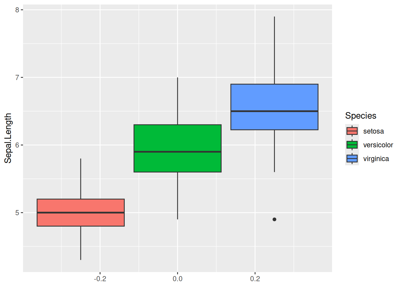 まず,アヤメの萼片長の箱ひげ図を描いてみよう。